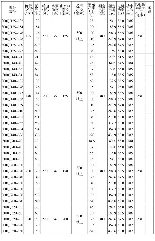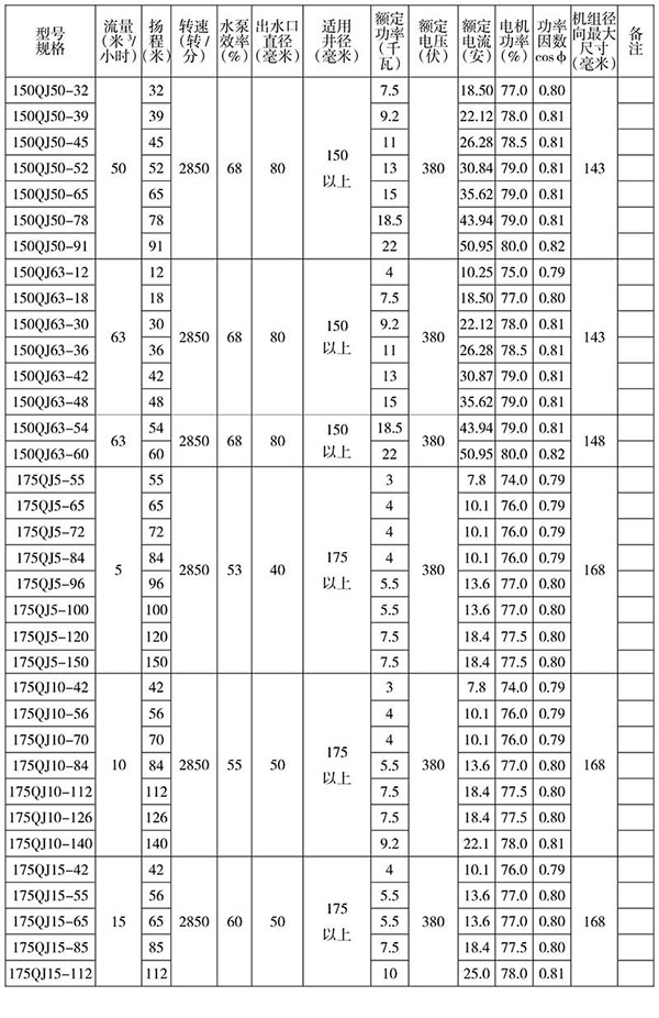 QJ(R) 型號特征:井用潛水電泵(熱水)